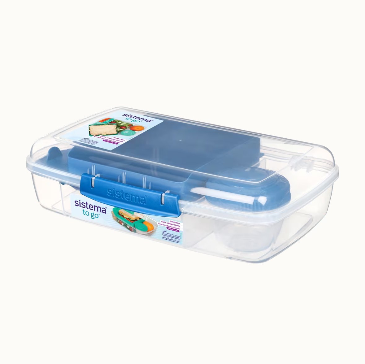 صندوق Sistema® Bento Box TO GO™ مثالي لنقل الغداء والوجبات الخفيفة إلى العمل أو المدرسة أو الحديقة مع المساعدة في تقليل استخدام الأكياس البلاستيكية والفيلم البلاستيكي والرقائق المعدنية.