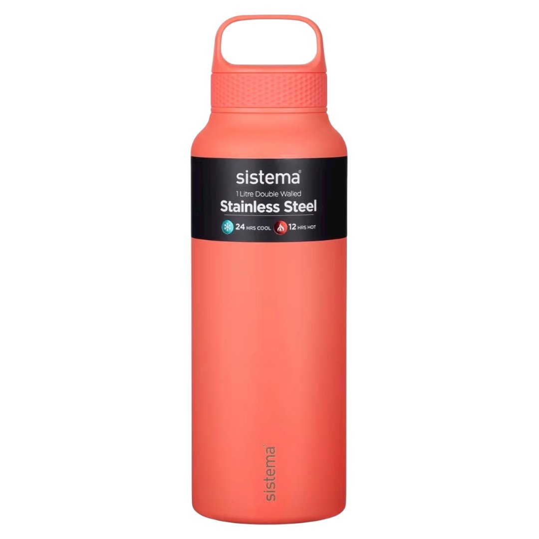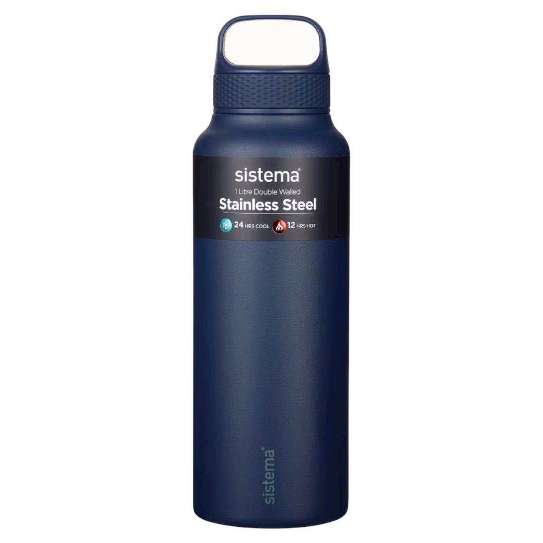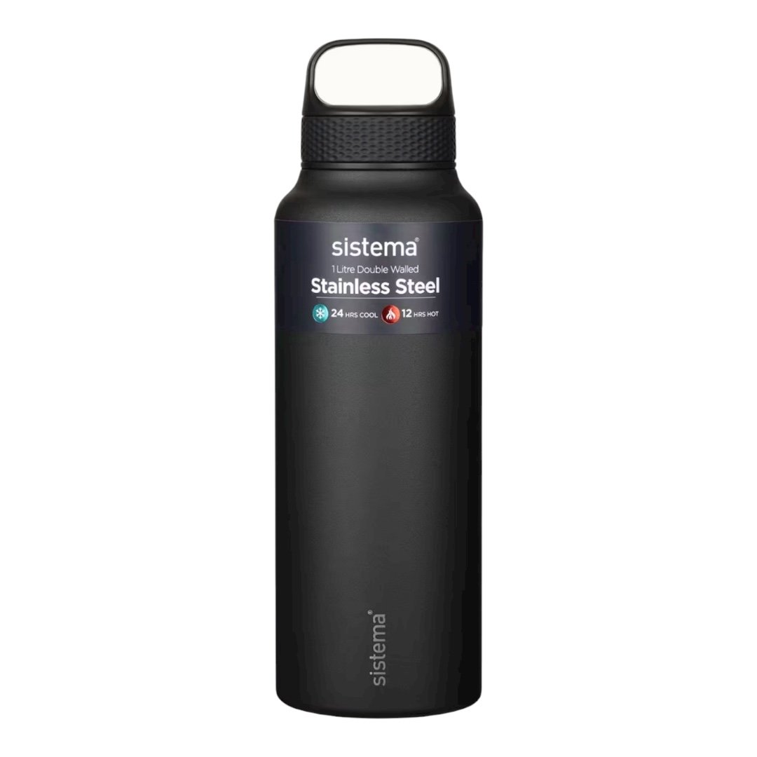 تم تصميم زجاجة المشروبات Sistema® المصنوعة من الفولاذ المقاوم للصدأ بسعة 1 لتر مع عزل مفرغ مزدوج الجدار للحفاظ على درجة حرارة مشروبك لفترة أطول.