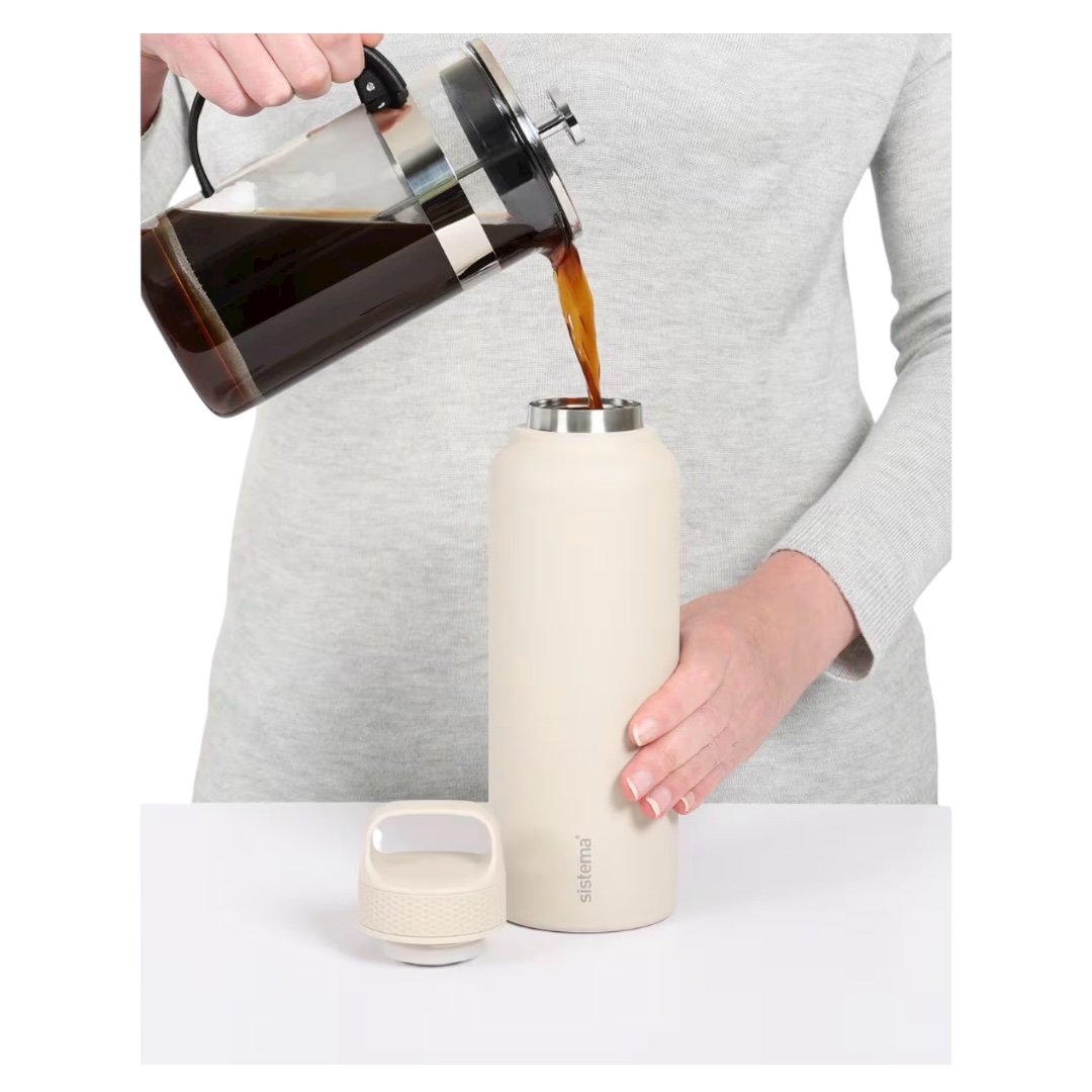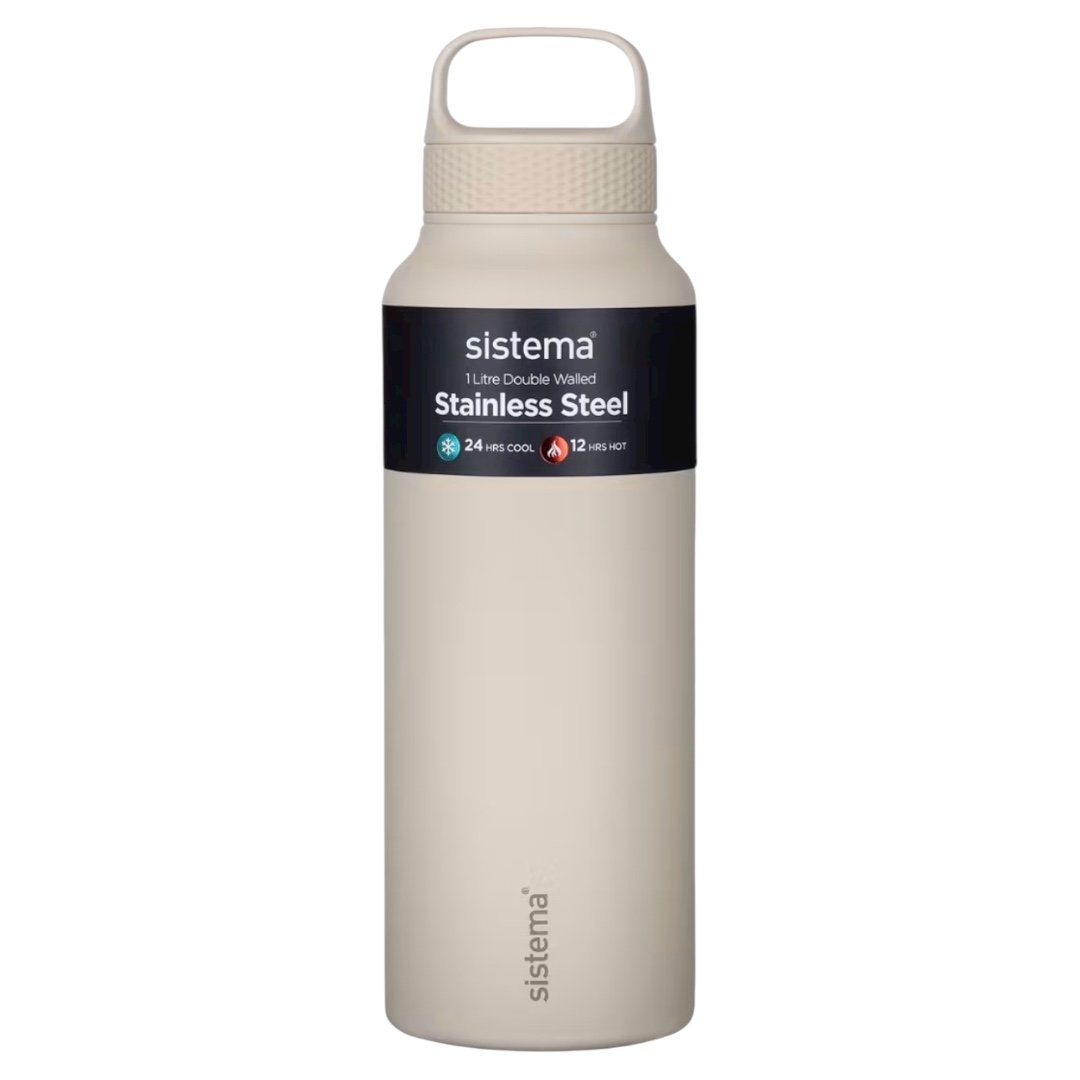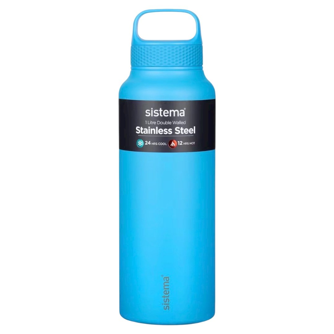 تم تصميم زجاجة المشروبات Sistema® المصنوعة من الفولاذ المقاوم للصدأ بسعة 1 لتر مع عزل مفرغ مزدوج الجدار للحفاظ على درجة حرارة مشروبك لفترة أطول.